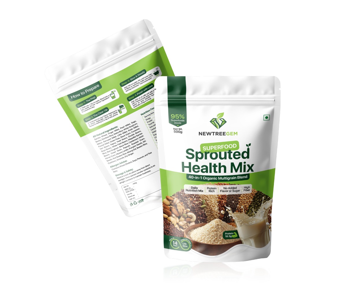 Health mix standup pouch packaging is essential for preserving product freshness, ensuring hygiene, and enhancing retail visibility in the competitive food segment. Professionally designed packaging improves shelf impact, communicates nutritional value clearly, and builds strong consumer trust through effective visual presentation.
